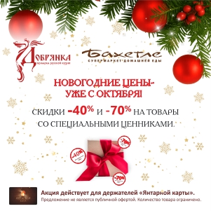 С 1 октября 2025 по 31 января 2026 дарим праздничное настроение с скидками от 40% до 70% на весь ассортимент новогодних сувениров!
