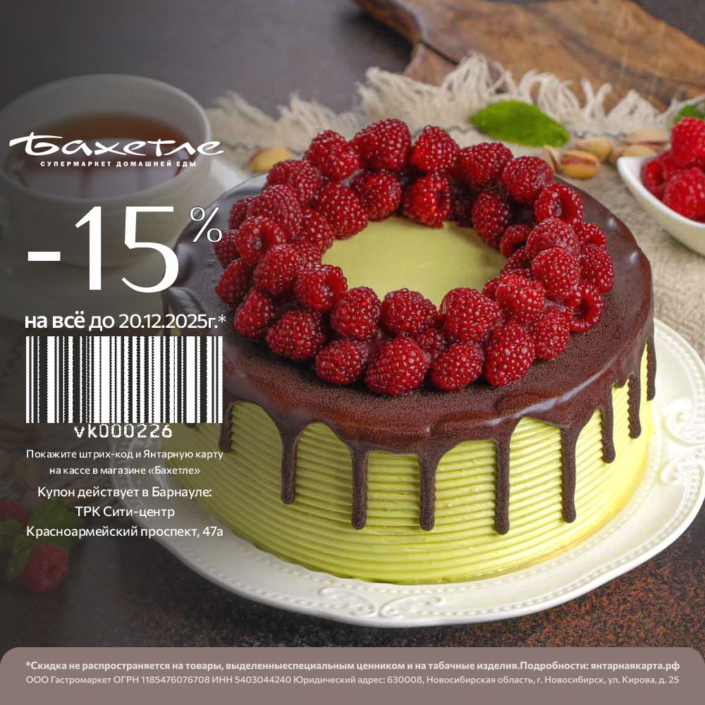 • Сделайте скрин купона и покажите его на кассе в магазине «Бахетле» до 20 декабря 2025 года.
