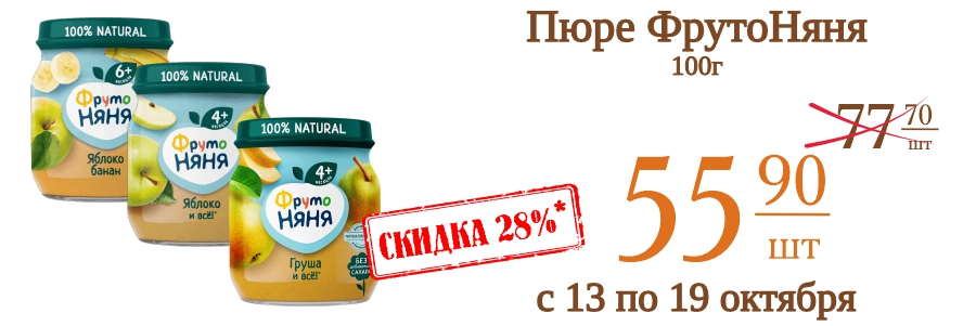 Пюре ФрутоНяня 100г 55,9 рублей