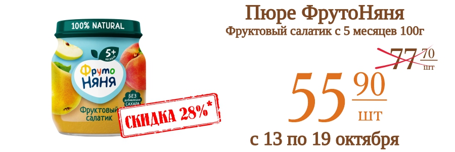 Пюре ФрутоНяня Фруктовый салатик с 5 месяцев 100г 55,9 рублей