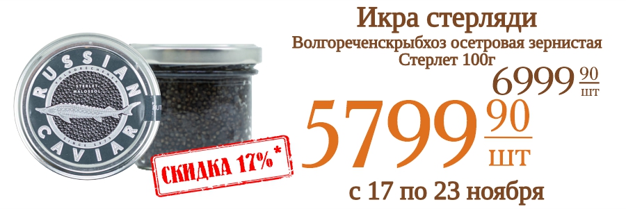 Икра стерляди Волгореченскрыбхоз осетровая зернистая Стерлет 100г 5799,9 рублей