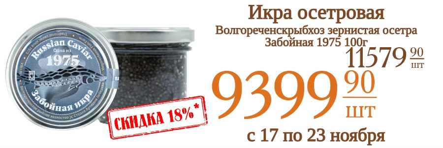Икра осетровая Волгореченскрыбхоз зернистая осетра Забойная 1975 100г 9399,9 рублей
