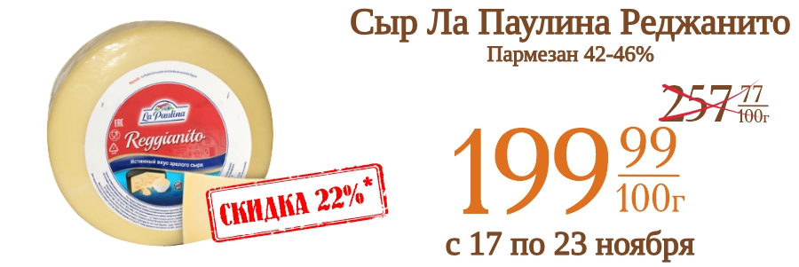 Сыр Ла Паулина Реджанито Пармезан 42-46% 199,99 рублей