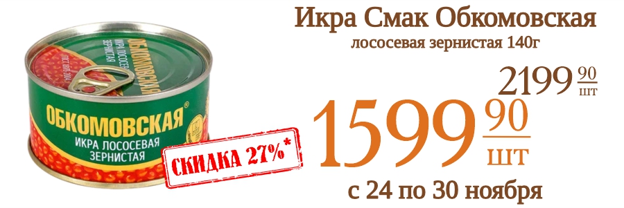 Икра Смак Обкомовская лососевая зернистая 140г 1599,9 рублей