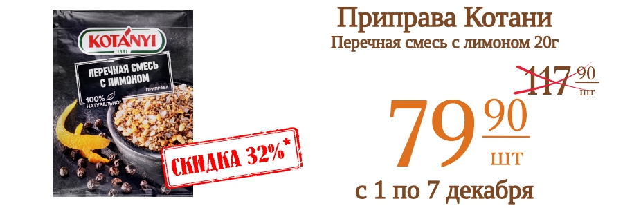 Приправа Котани Перечная смесь с лимоном 20г 79,9 рублей