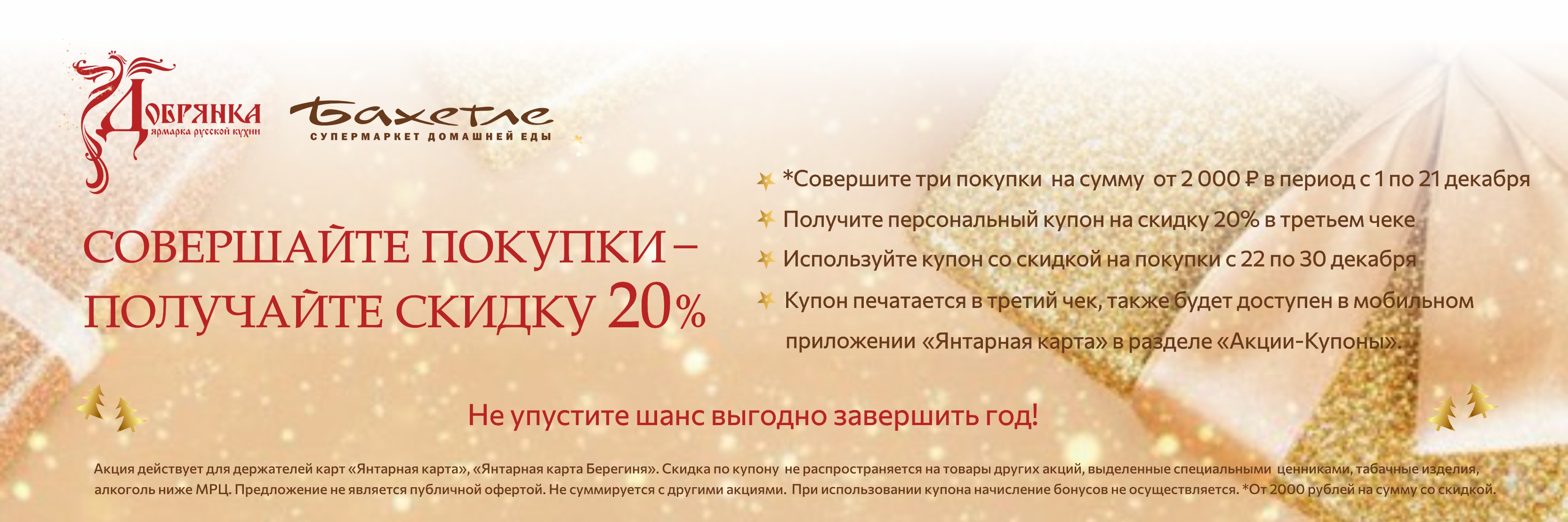 ✔ Совершите 3 покупки от 2 000 ₽ в период с 1 по 21 декабря