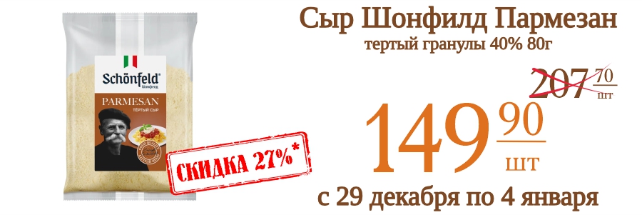 Сыр Шонфилд Пармезан тертый гранулы 40% 80г 149,9 рублей