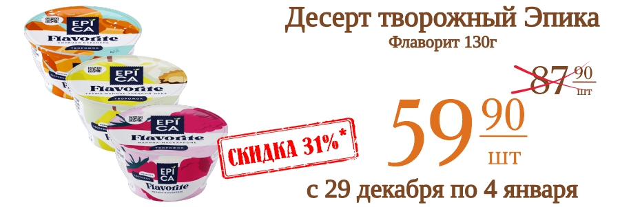 Десерт творожный Эпика Флаворит 130г 59,9 рублей