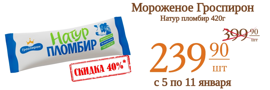 Мороженое Гроспирон Натур пломбир 420г 239,9 рублей