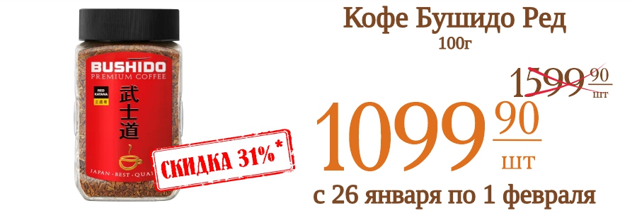 Кофе Бушидо Ред 100г 1099,9 рублей