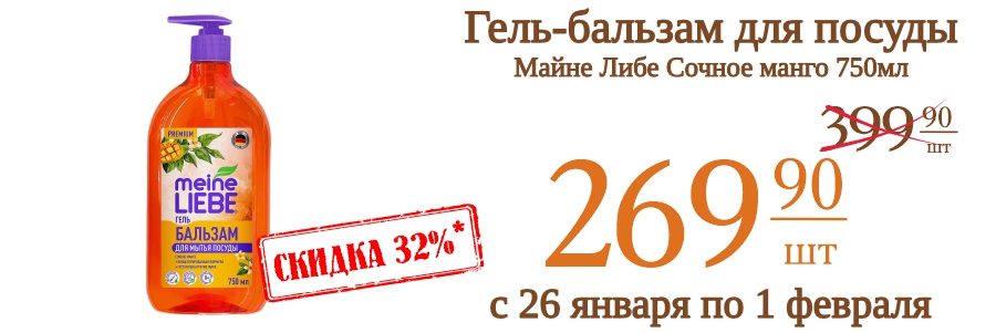 Гель-бальзам для посуды Майне Либе Сочное манго 750мл 269,9 рублей