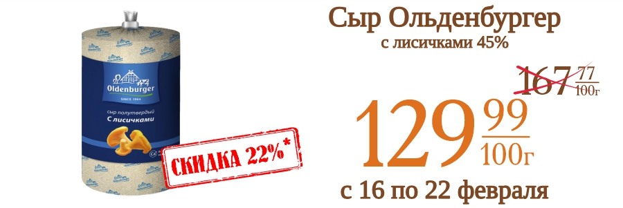 Сыр Ольденбургер с лисичками 45% 129,99 рублей