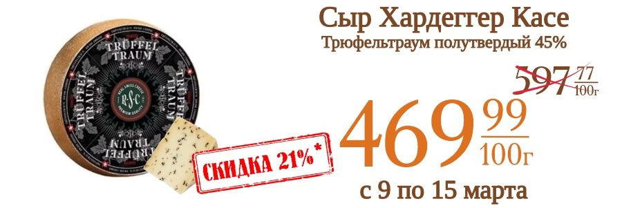 Сыр Хардеггер Касе Трюфельтраум полутвердый 45% 469,99 рублей
