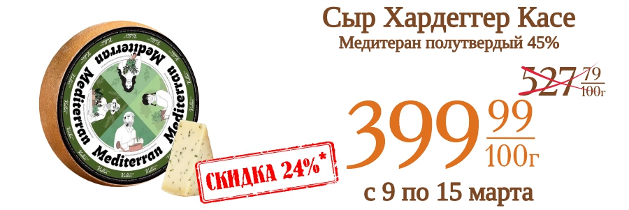 Сыр Хардеггер Касе Медитеран полутвердый 45% 399,99 рублей