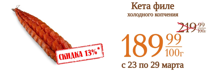 Кета филе холодного копчения 189,99 рублей