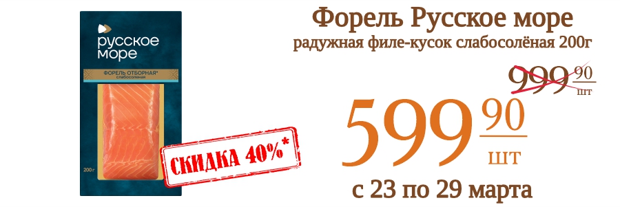Форель Русское море радужная филе-кусок слабосолёная 200г 599,9 рублей