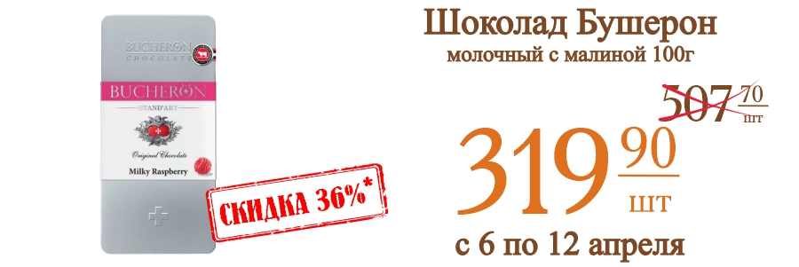 Шоколад Бушерон молочный с малиной 100г 319,9 рублей