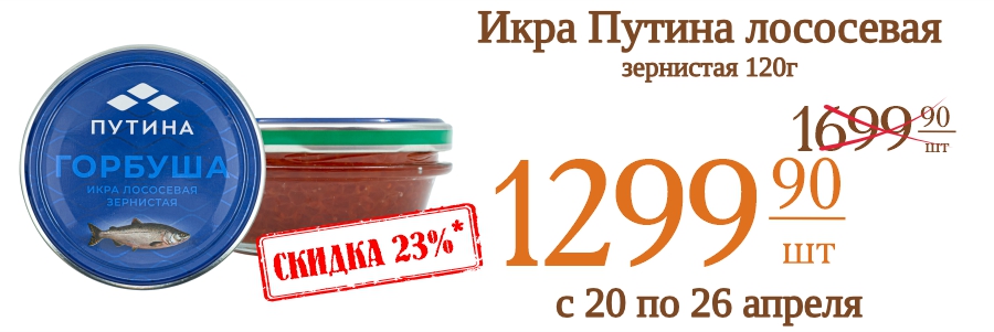 Икра Путина лососевая зернистая 120г 1299,9 рублей