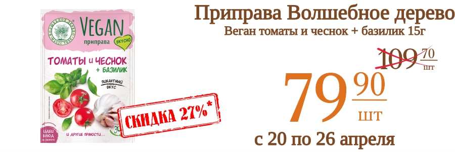 Приправа Волшебное дерево Веган томаты и чеснок + базилик 15г 79,9 рублей